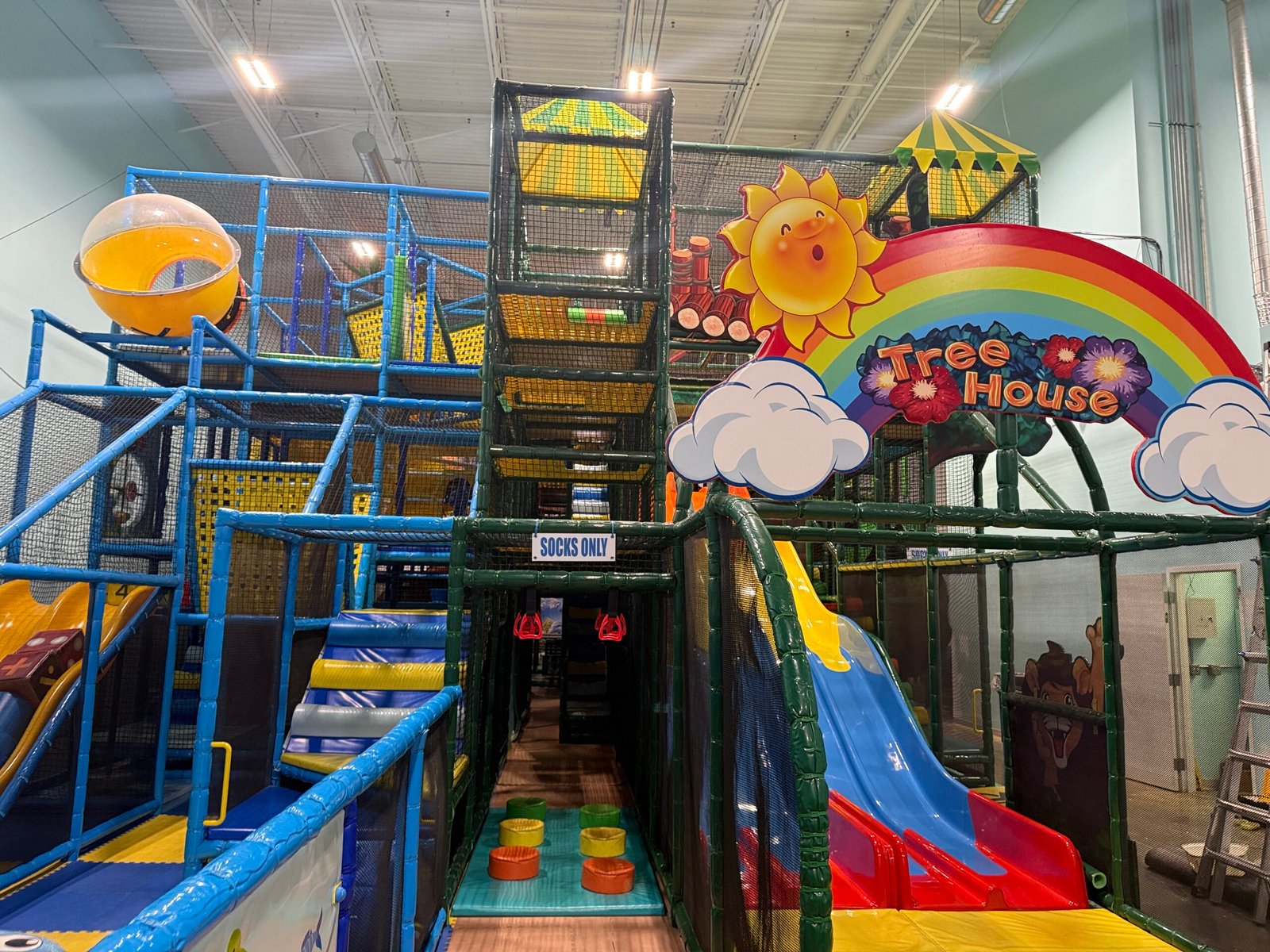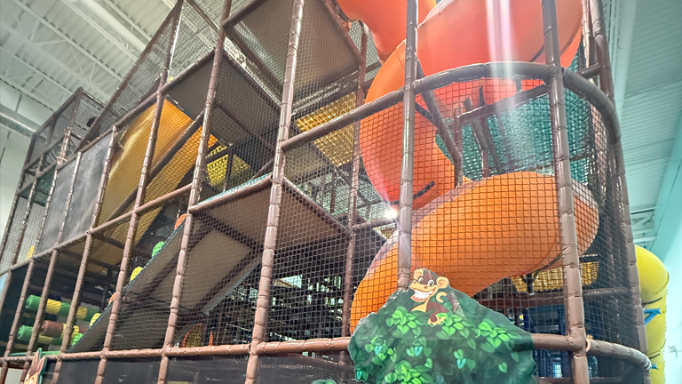 Rent all 7,000 square feet and 5,000 sq ft play place with 9 slides, interactive trampoline, mini zip line, ball cannons, swing log, spinners, and tunnels galore